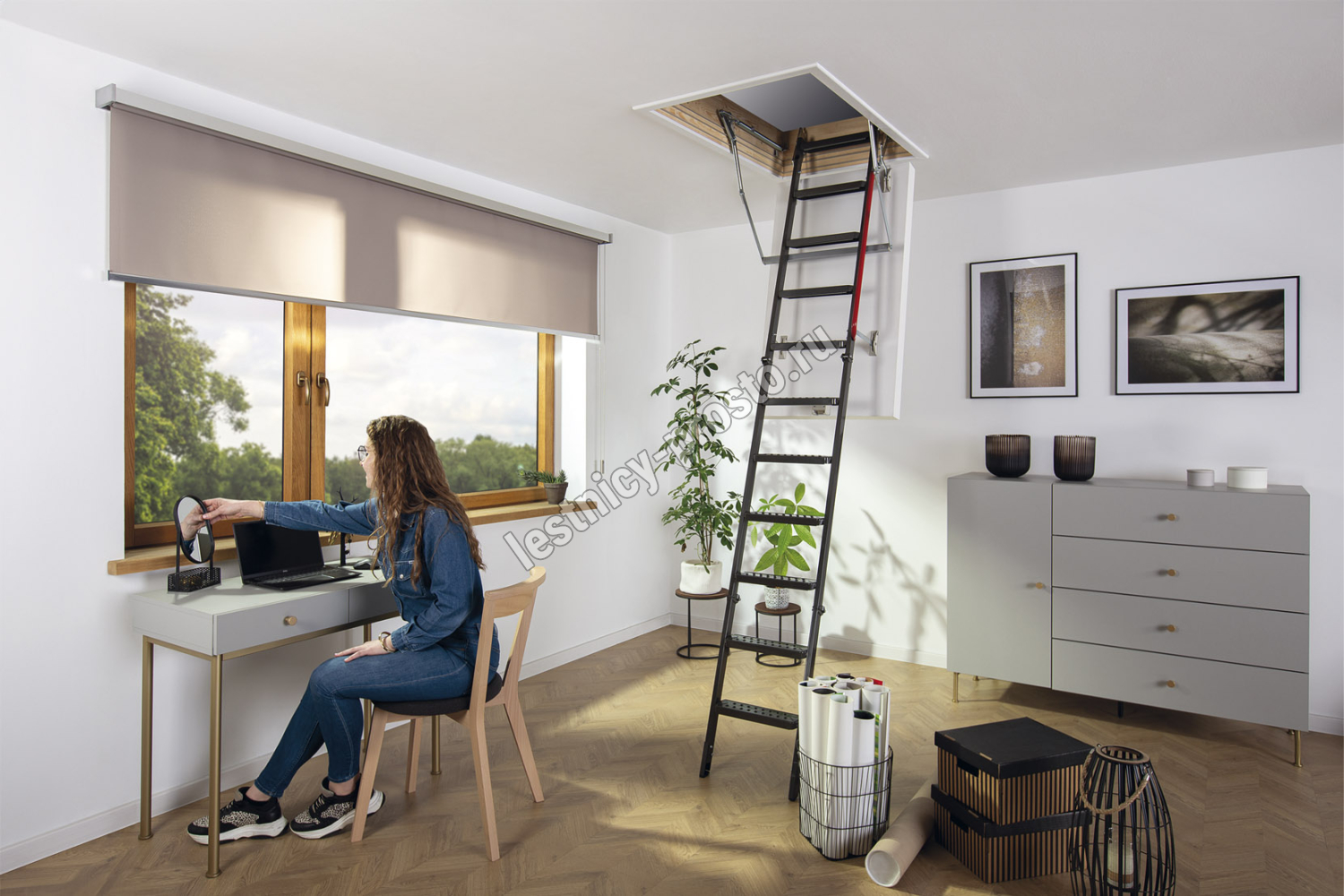 Супертеплоизоляционная металлическая чердачная лестница FAKRO LMT 60×130 см, h-305 см