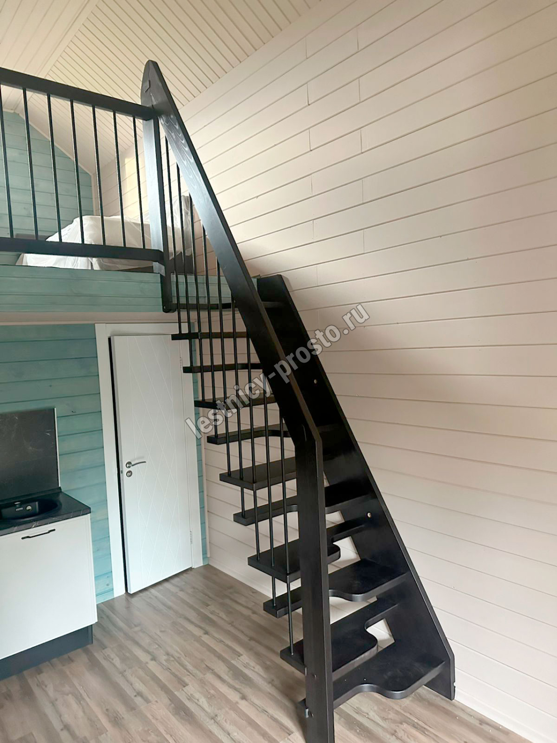 Лестница Prosto Studio 720 гусиный шаг имеет компактную конструкцию на подвесах