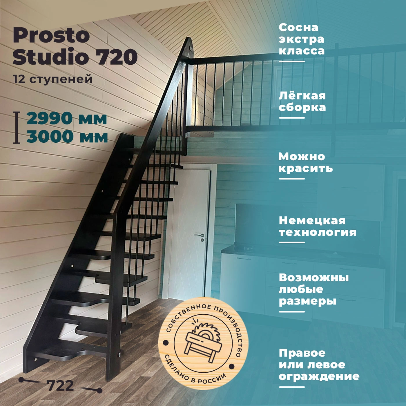 • Лестница Prosto Studio представлена в двух вариантах: с ограждением с правой стороны и с ограждением с левой.