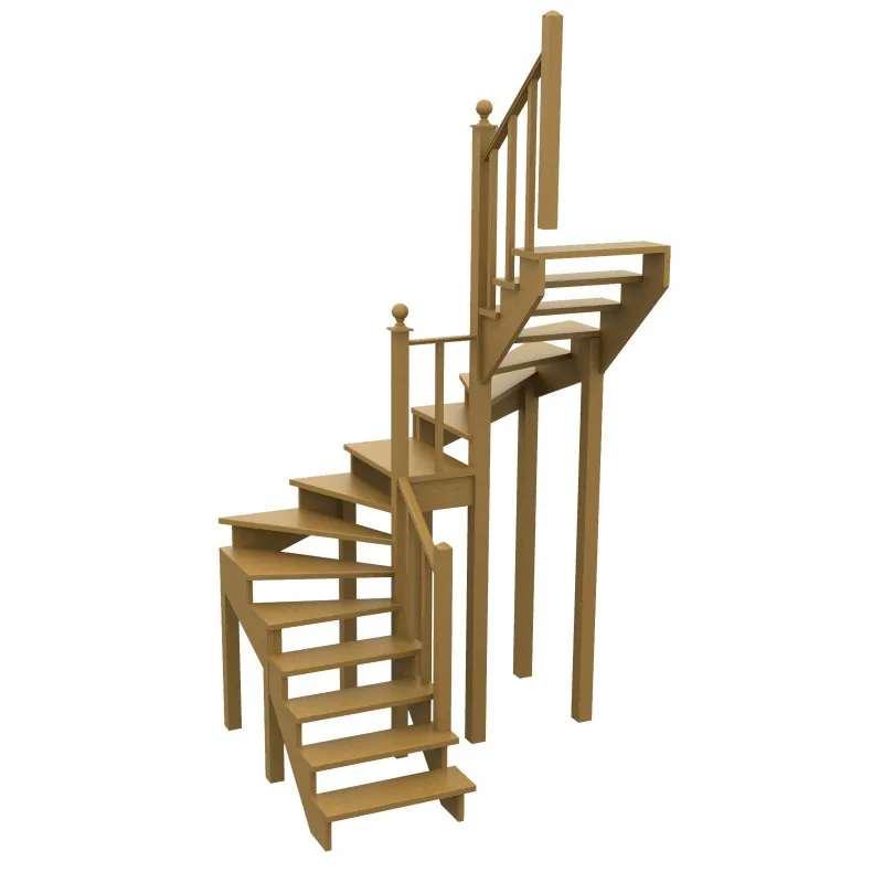 Материал: Дуб (ступени и поручень), сосна (косоуры, столбы, балясины)