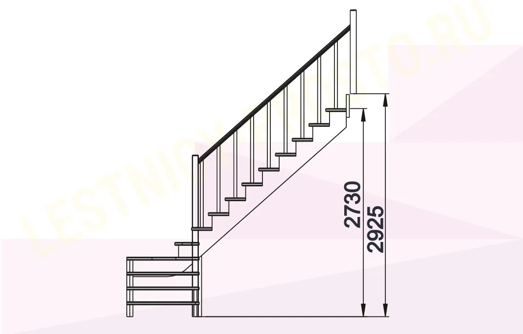 Ступени и поручень лестинцы изготовлены из дуба, остальные элементы из сосны.