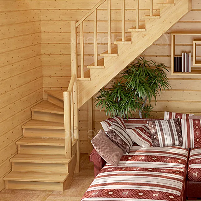 Обратите внимание! Данный вариант лестницы изготовлен из сосны эконом-класса, имеющей заметные серые/синие вкрапления цвета - это не отражается на прочности лестницы, но может быть заметно при покраске в светлые тона.