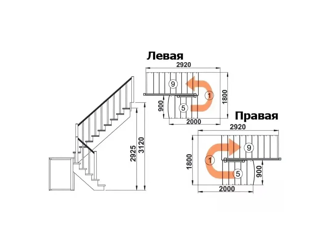 Высота от пола нижнего этажа до пола верхнего этажа: 3120 мм