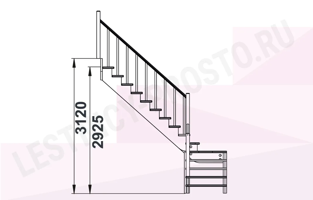 Базовый комплект включает в себя деревянные элементы лестницы и ограждения без какого-либо покрытия.