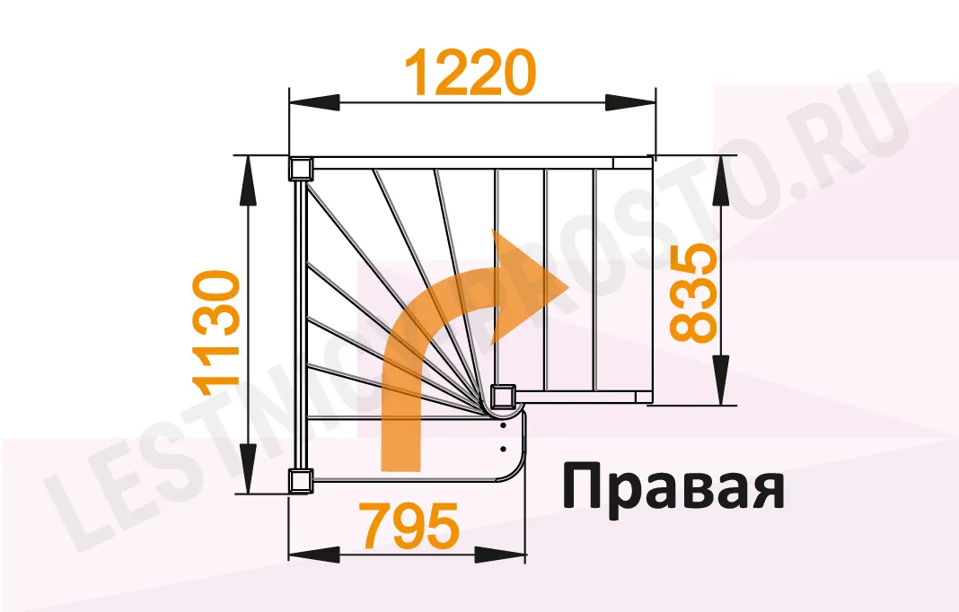 Схема лестницы ЛС-91М с поворотом направо