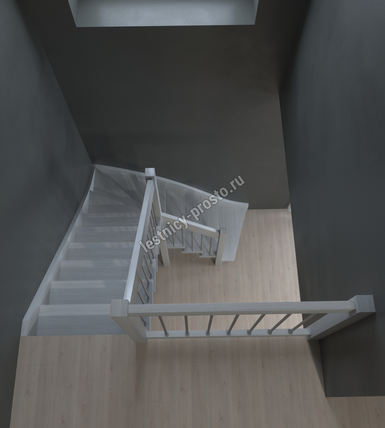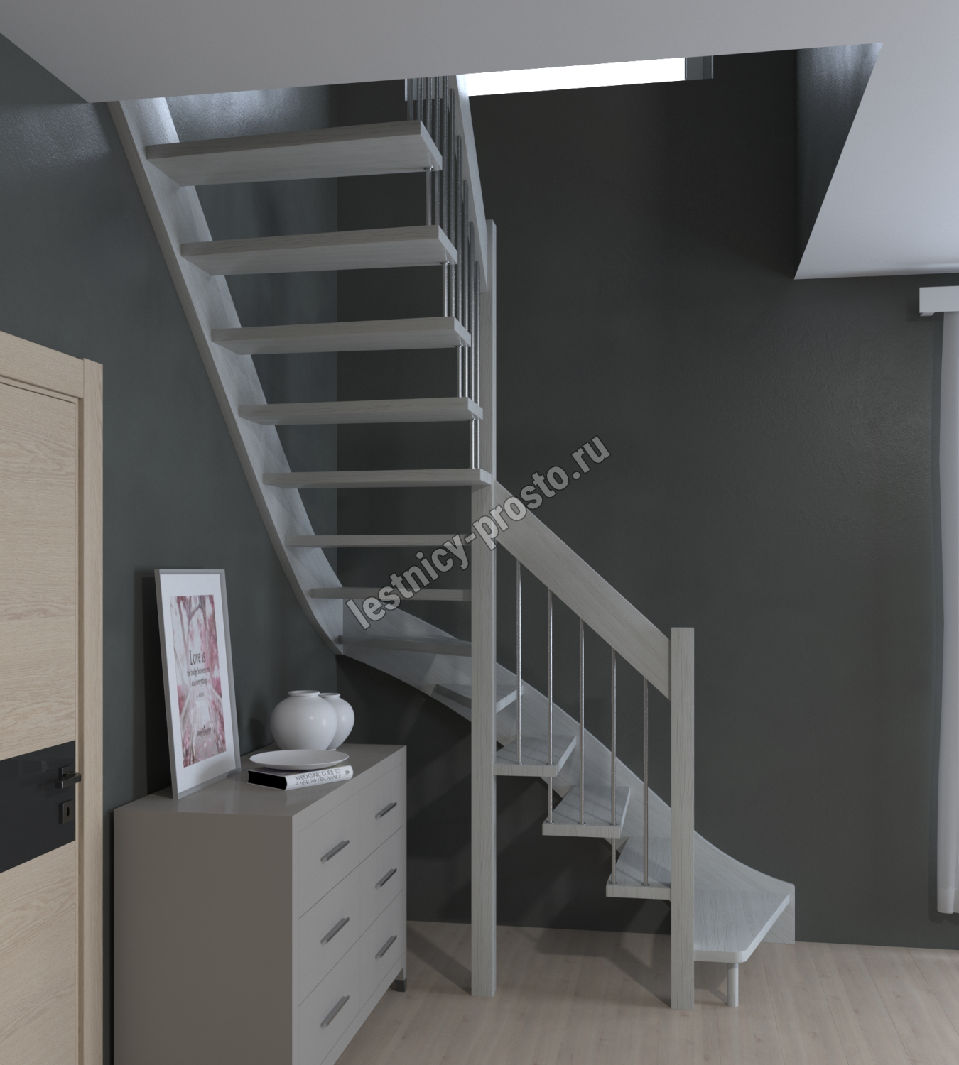 Вид лестницы по реализации поворота: с поворотом на 90° через площадку, с поворотом на 90° через 4 забежные ступени;