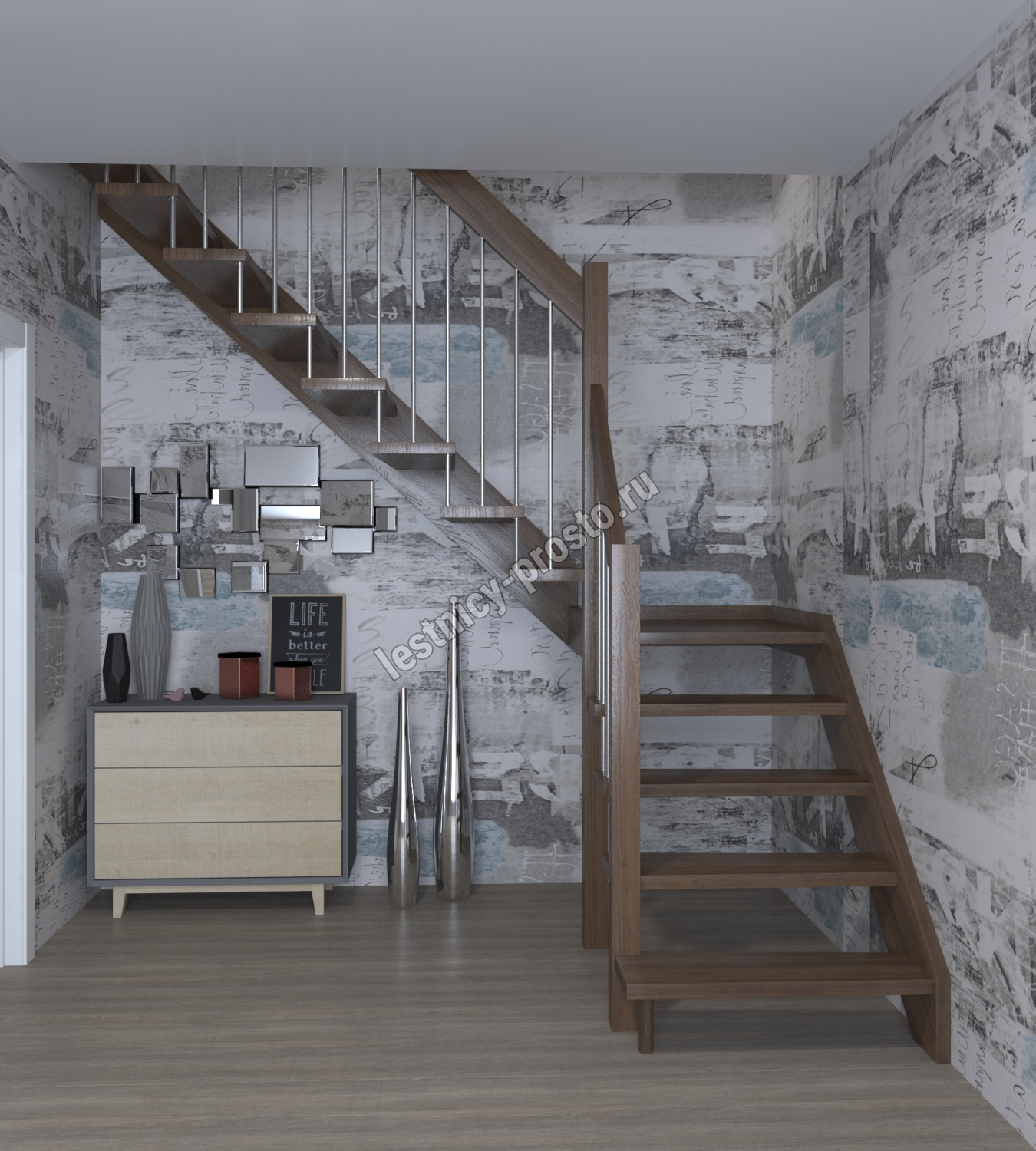 возможна комбинированная лестница: из сосны (ступени бук, ясень, дуб);
