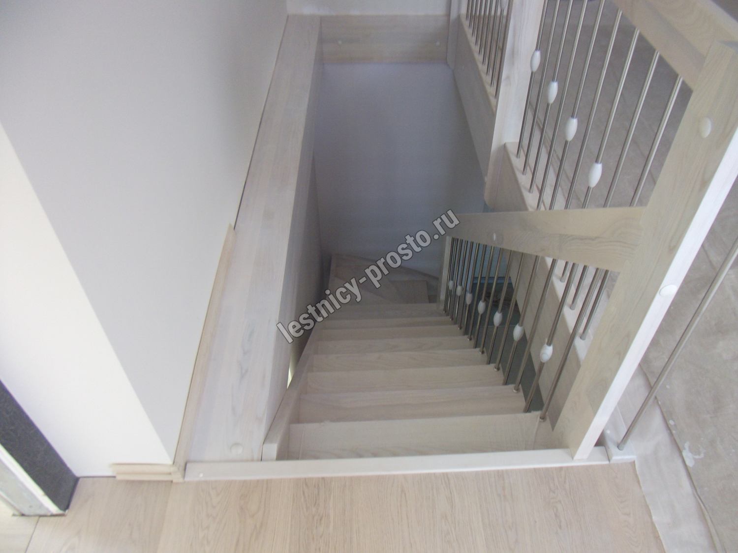 возможна комбинированная лестница: из сосны (ступени бук, ясень, дуб);