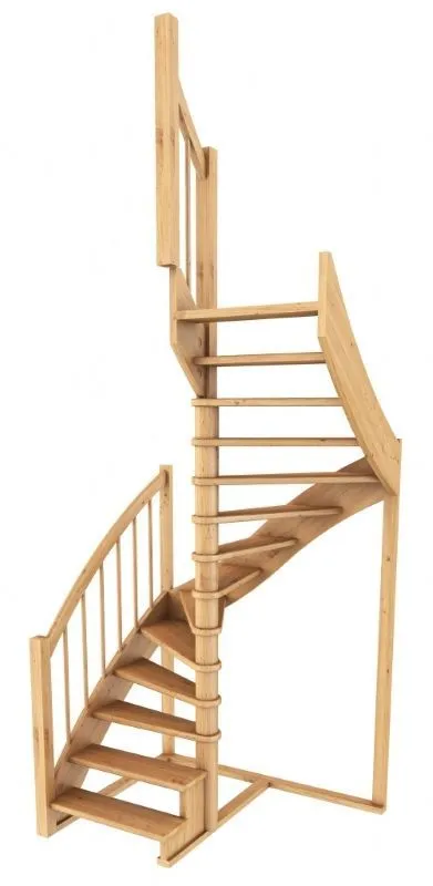 Классическая модель поворотной лестницы раскрывает всю природную красоту натуральных материалов. У лестницы комфортная высота шага, удобный широкий марш и угол подъема. Лестница изготавливается под заказ. Возможны варианты подходящие под разные размеры проёма. Базовое ограждение можно заменить на кованое или точеное. В дополнение можно приобрести бортики, подступени, или мини-подступени. Первую ступень можно заменить на пригласительную - лекальную. Стоимость указана для лестницы без какого-либо покрытия.