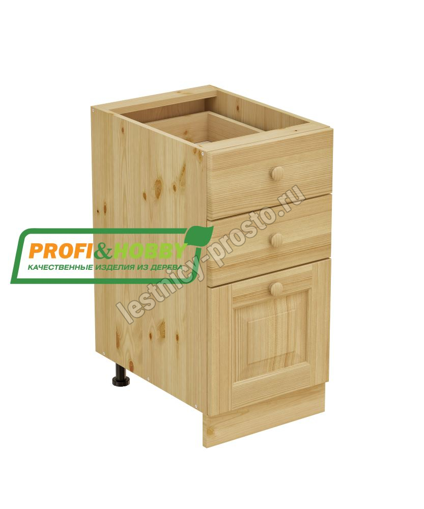 Тумба 3 ящика 400 х 560 х 720 сосна, без покраски