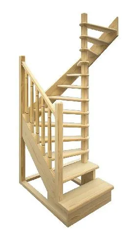 При монтаже этой лестницы, возможно регулировать высоту и глубину шага, таким образом можно получить лестницу под высоты этажа в диапазоне 2220 - 3000 мм. Ступени лестницы выполнены из сращенной ольхи и тонированы защитным лаком.