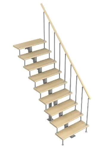 Каркас лестницы представляет собой набор модулей, которые комплектуются уже готовыми к монтажу.