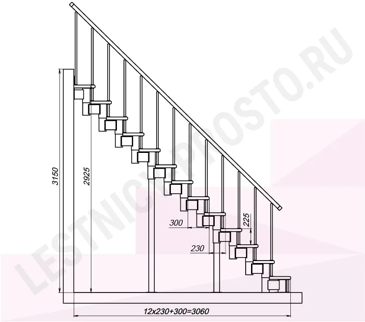Высота лестницы 2925 - 3150 (13 ступеней) мм