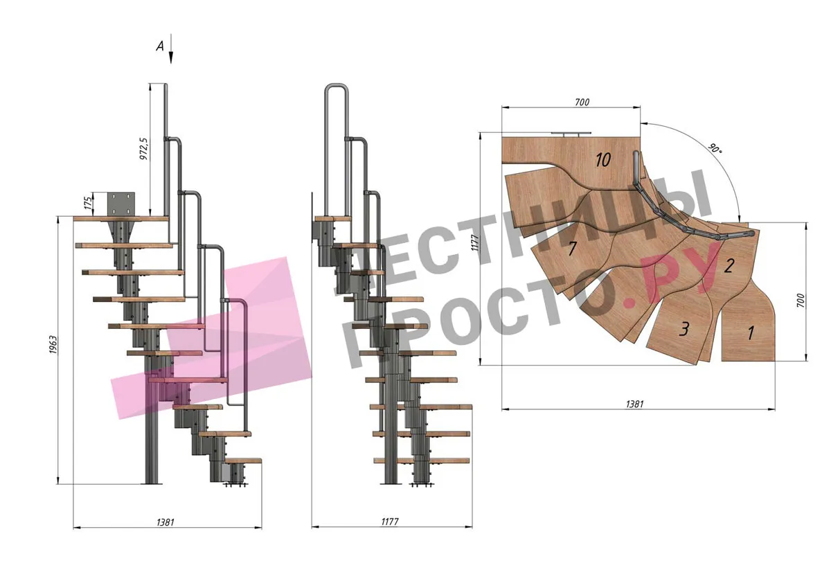 Высота лестницы 1800 - 2640 (10 ступеней) мм