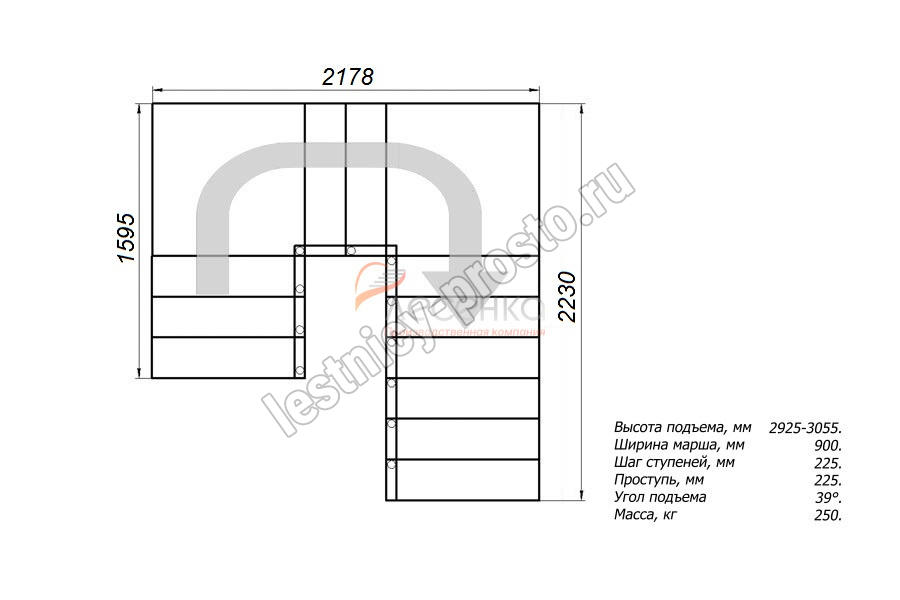 Модульная лестница Комфорт 225 2925-3055, Серый, Лиственница, Крашеная