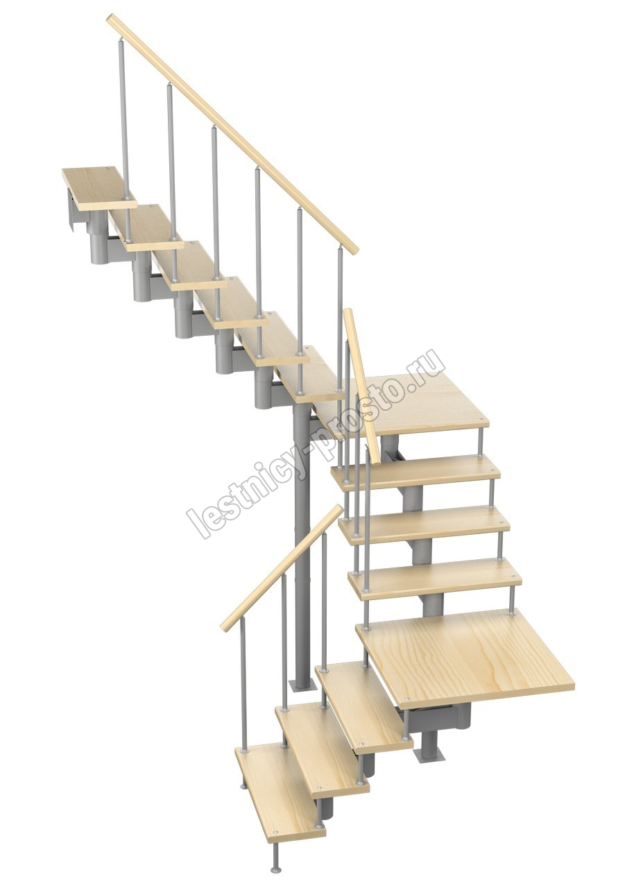 Модульная лестница Комфорт 225 3150-3290, Серый, Сосна, Нержавеющая сталь