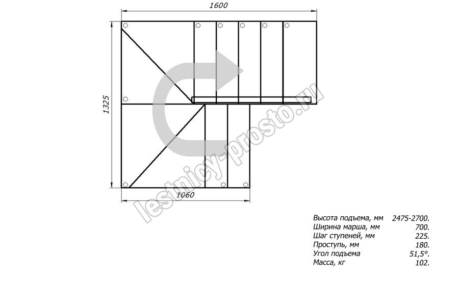 Высота лестницы 2475 - 2700 мм