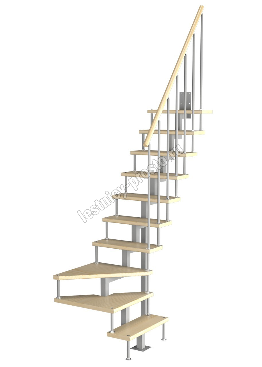 Модульная малогабаритная лестница Компакт 2250-2475, Серый, Бук, Нержавеющая сталь