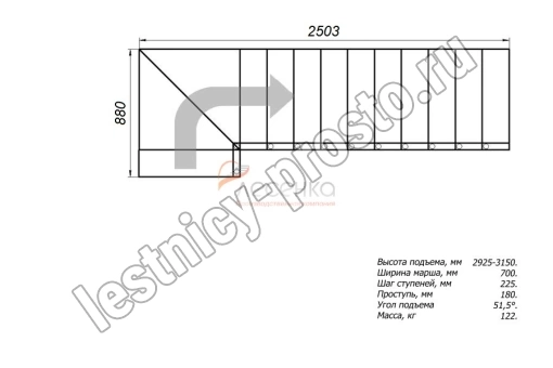 Количество ступеней на первом и втором марше может меняться между собой в зависимости от размера проема, при этом общее количество ступеней не меняется!!!