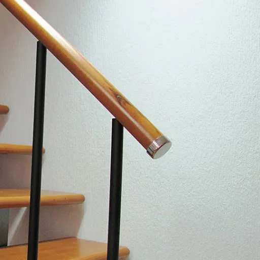 Материалы полностью повторяют материалы ограждения лестницы: поручень выполнен из пвх с текстурой дерева, стойки из хромированной стали.