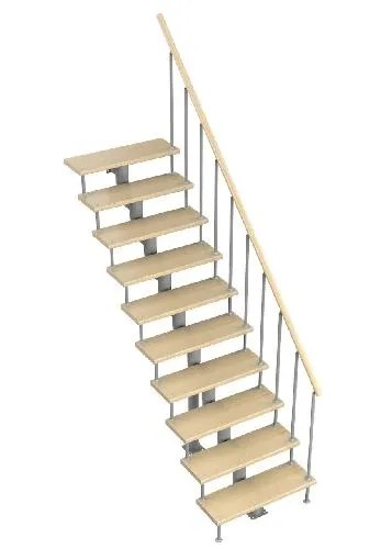 Решение о направлении поворота принимается при сборке лестницы - универсальная конструкция позволяет собрать правозабежную и левозабежную лестницы. Высота ступеней регулируется с шагом 3 мм. в пределах 217-247 мм., благодаря чему, лестница прекрасно подгоняется под необходимую высоту.
