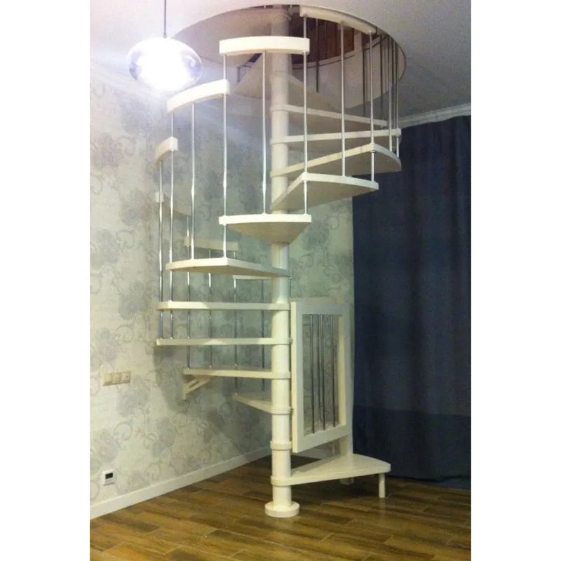 Винтовая лестница SPIRAL WOOD d160 см, серебро, лакированный бук