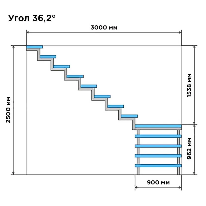 Зная высоту модели и число ступеней, вы определите уклон конструкции. Оптимальный показатель - 30-4о градусов. Более крутая будет неудобна и небезопасна, более пологая потребует значительной площади. Зная, как рассчитать лестницу из металла, вы сможете скорректировать параметры, чтобы добиться правильного уклона и получить образцовый чертёж для собственноручного сооружения лестницы.