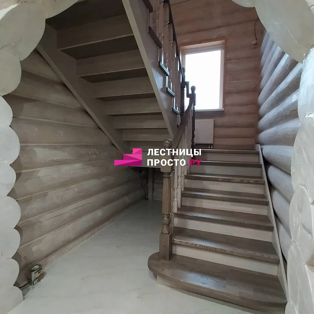 Лестница из ясеня с фигурными балясинами в частном доме по индивидуальному проекту LP-1-46